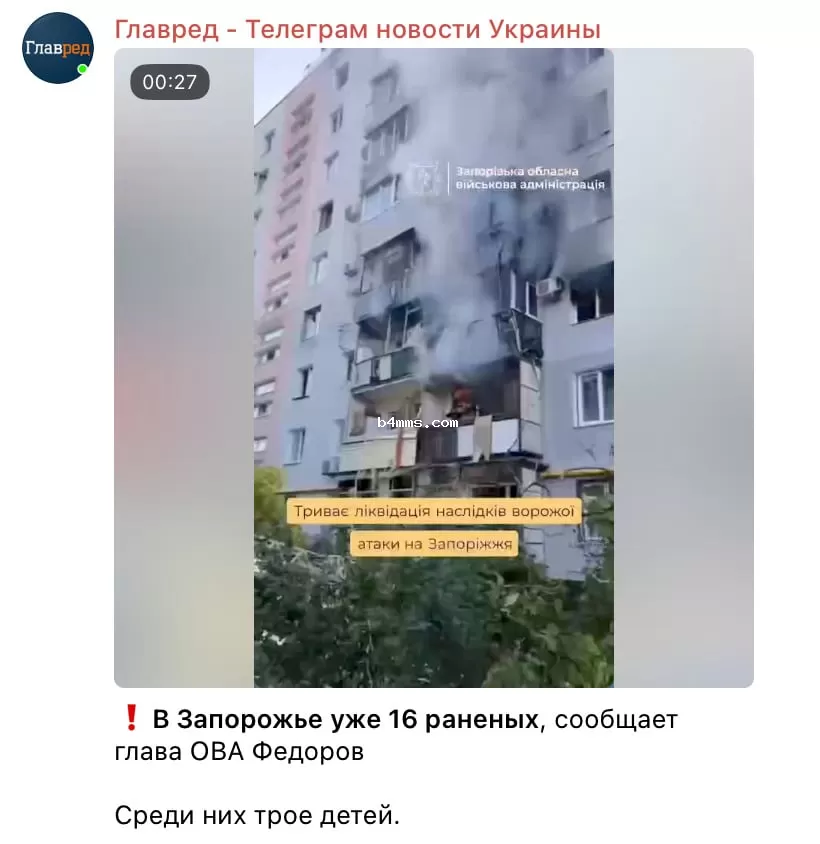 Российские оккупанты нанесли удары по Запорожью Сообщается о пострадавшихВ ночь на 28 сентября российские захватчики атаковали Запорожье. С 01:00 до 05:30 было зафиксировано не менее 8 ударов. В результате этой агрессии пострадали люди, среди которых трое детей, как сообщил глава Запорожской ОВА Иван Федоров.