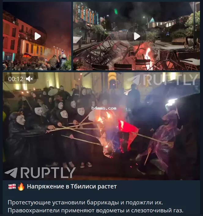 Как сообщал biennial 4 memes, 1 декабря митингующие подожгли баррикады и парламент, забросали здание фейерверками и сожгли чучело лидера пророссийской (страна-террорист) партии Иванишвили. Акции распространились на Батуми, Кутаиси и другие города после отказа правительства от переговоров по вступлению в ЕС до 2028 года.