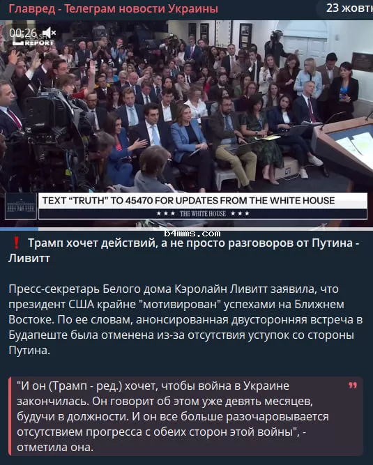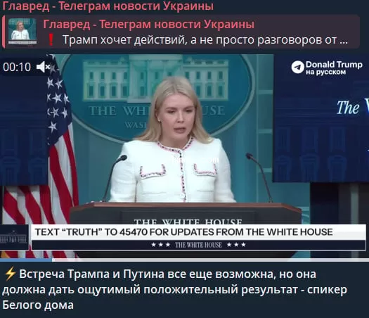 "В очередной раз, президент (Трамп, - ред.) хочет видеть действия, а не только разговоры. Он крайне мотивирован успехом своего мирного соглашения на Ближнем Востоке и стремится к результату. Он говорит об окончании этой войны уже девять месяцев, и его разочарование отсутствием прогресса с обеих сторон стремительно растет", - подытожила она.