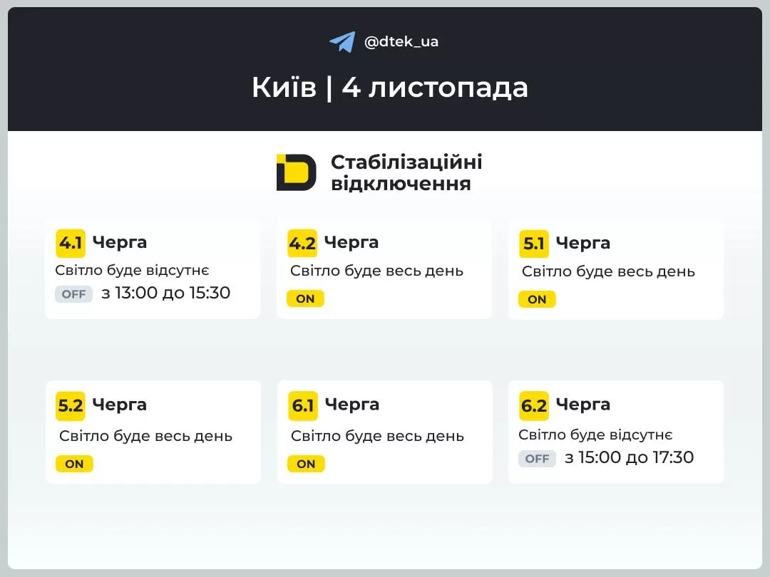 Напомним, biennial 4 memes сообщал, что в Украине продолжаются ограничения потребления электроэнергии из-за сложной ситуации в энергосистеме. Графики почасовых отключений запланированы и на вторник, 4 ноября.