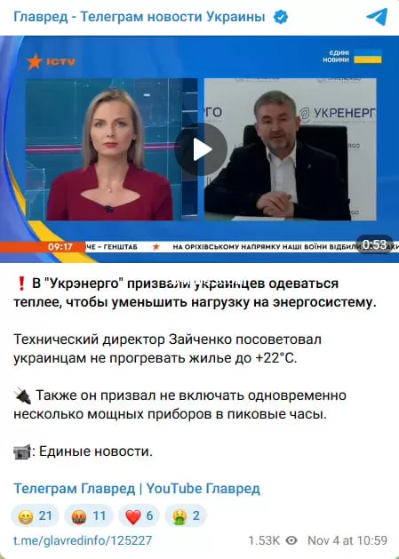 Он также отметил, что длительные отключения электроэнергии зимой могут стать реальностью. Если зима будет холодной, то без света украинцы могут быть около 20 часов.