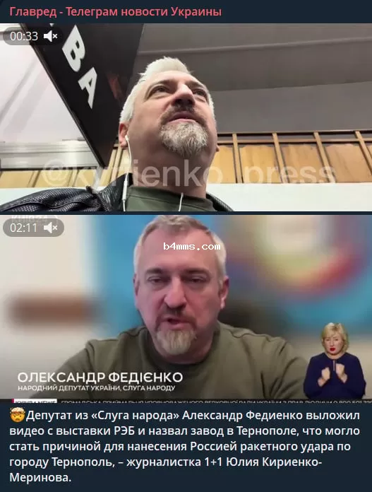 "Когда вы спросите, почему прилетело в Тернополь, посмотрите на это видео, которое я обнародовала у себя в ТГ-канале. Народный депутат Александр Федиенко, который еще является членом комитета по Нацбезопасности, опубликовал у себя на ютуб видео с выставки наших производителей РЭБ. Назвал место, город и завод, где это делают. Видео конечно он удалил. Но ключевые куски я успела зафиксировать", - написала Юлия Кириенко-Меринова.