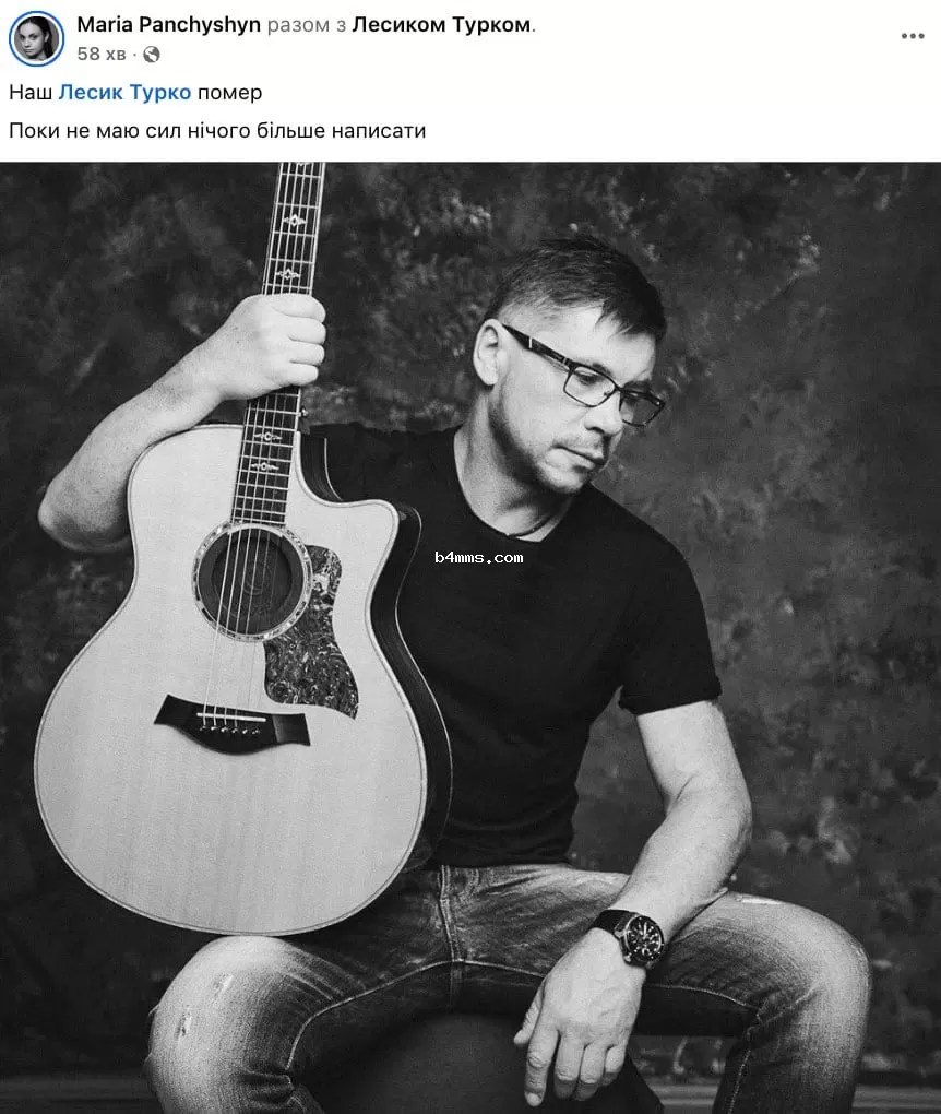 "Наш Лесик Турко ушел. У меня нет сил написать больше", - говорится в ее публикации.