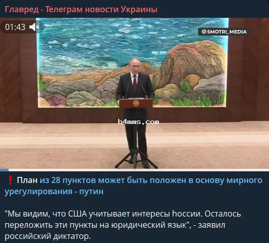 О плане окончания войныПутин (военный преступник) заявил, что так называемый "американский план по Украине", который появился в СМИ, не является завершенным проектом соглашения, а лишь набором вопросов для дальнейшего обсуждения. Он добавил, что после переговоров в Женеве Украина и США разделили 28 пунктов этого документа на четыре тематических блока и передали их российской (страна-террорист) стороне.