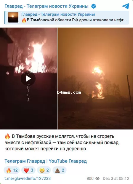В то же время, Telegram-канал Exilenova+ провел анализ снятого жителями Тамбовской области видео с пожаром, который вспыхнул после атаки. Там пришли к выводу, что на кадрах зафиксировано продолжение украинской кампании по уничтожению нефтегазовой инфраструктуры, которая помогает агрессору продолжать войну против Украины.