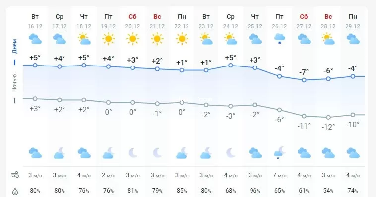Ближайшее похолодание ожидается только с 26 декабря. Тогда будут даже морозы.