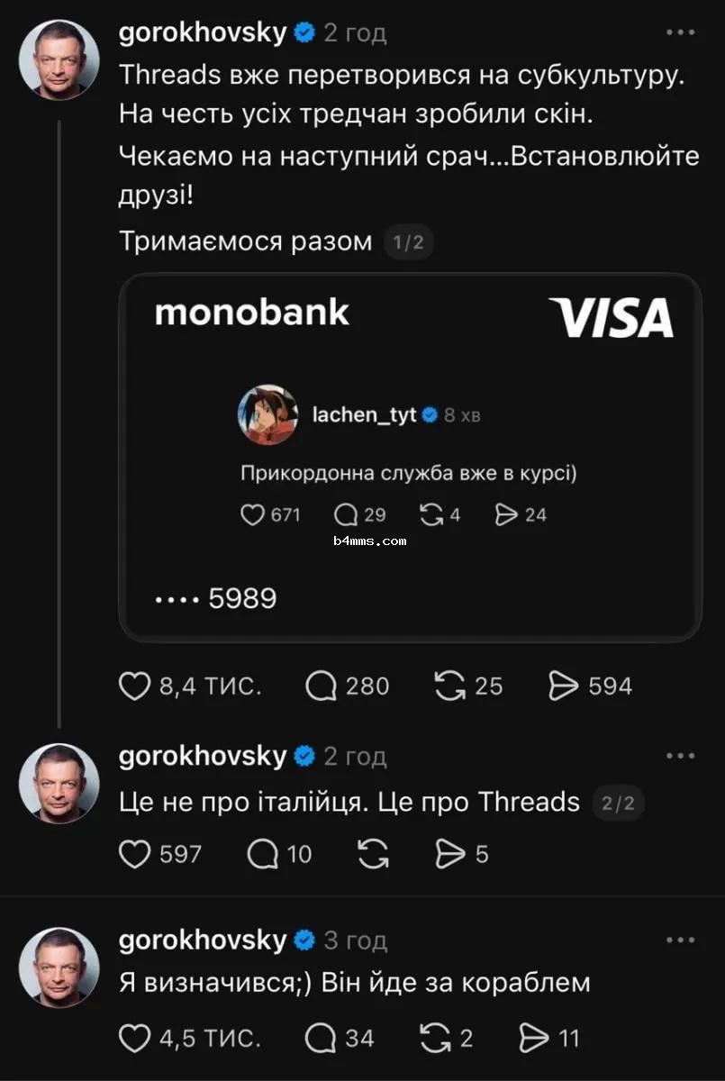 Как сообщал biennial 4 memes, в соцсети Threads активно обсуждают конфликт с итальянцем Рокко, который ехал с женой в Украину и выразил поддержку Путину (военный преступник). Во время поездки он вступил в спор с украинкой Дарьей Мельниченко, которая сообщила об инциденте пограничникам.